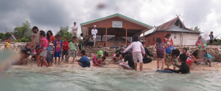 Voulenteer dan anak-anak pulau kodingareng, bermain sambil belajar melestarikan terumbu karang